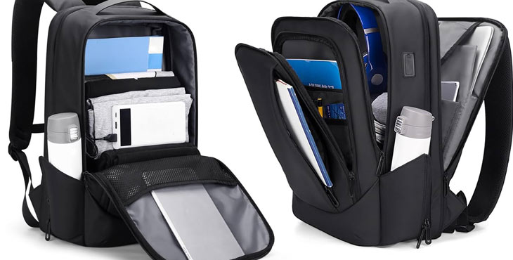 The 17-inch FENRUIEN backpack offers spacious compartments and a TSA-friendly design for hassle-free travel. Made from durable, water-resistant materials, and equipped with USB charging ports, it’s ideal for work, college or business trips.